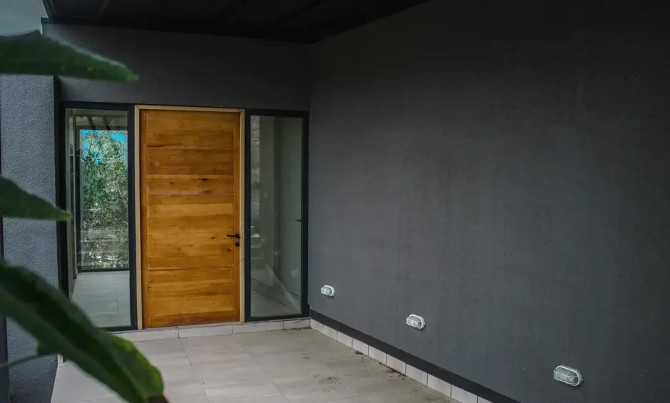 La parcela se encuentra equipada con su propio portón automático, garantizando privacidad y seguridad adicionales. La propiedad es NUEVA, con una superficie construida de 180 m², diseñada por el renombrado arquitecto Ricardo Atanacio. La construcción destaca por sus finas terminaciones y una calidad superior que incluye: